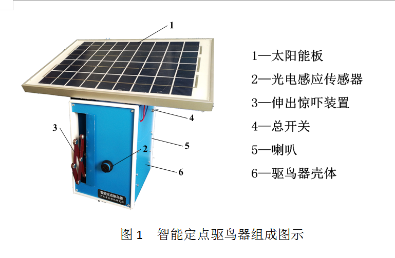 6、安裝完畢后使用時,向下扳動圖1中的總開關,打開驅鳥器,可以用手遮擋一次圖1中的光電感應傳感器,測試驅鳥器功能是否正常。